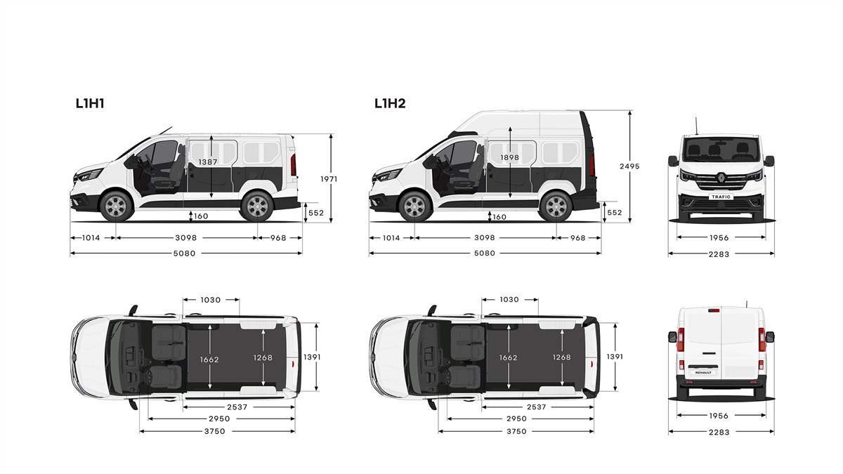 | L1H1 fourgon | L1H2 fourgon | L2H1 fourgon | L2H2 fourgon | L1H1 cabine approfondie | L2H1 cabine approfondie | |