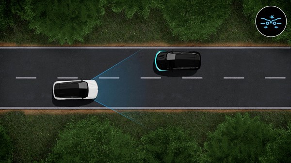 Conservez la distance de sécurité adéquate avec le véhicule devant vous, lorsque vous roulez. Le système agit sur le frein lorsque la distance est trop faible, et inversement sur l’accélérateur lorsque la route est de nouveau dégagée.